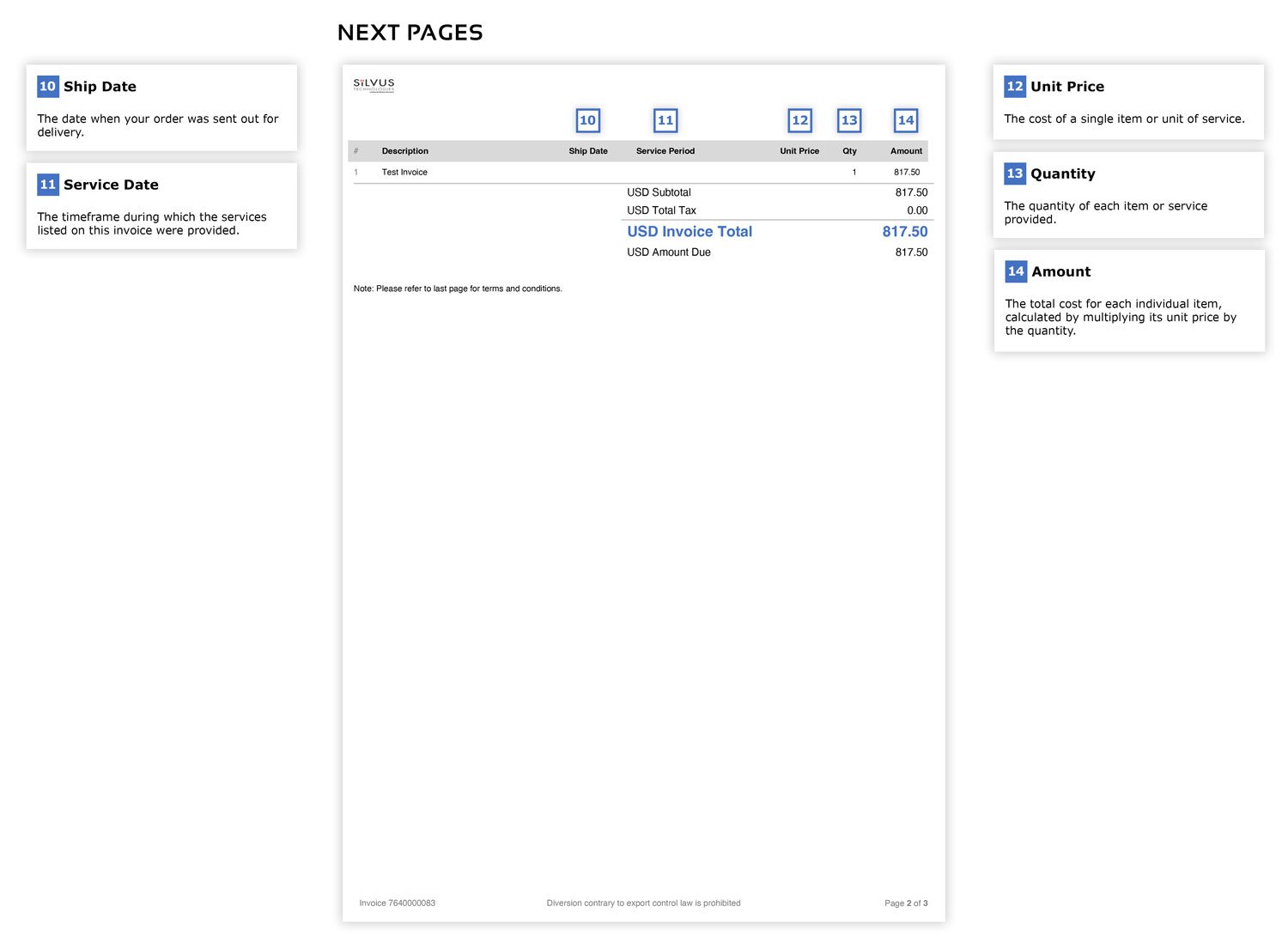 Page 1 provides a summary of invoice details: